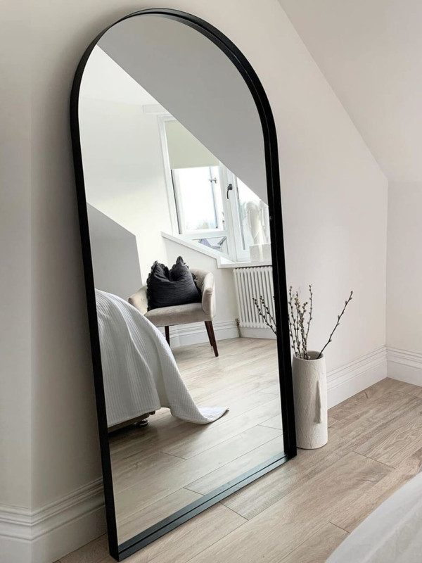 Зеркало «Radiant». Артикул GMZ-15-1/2/3 Среди зеркал в полный рост представленная модель в виде арки пользуется особой популярностью. Секреты просты – высокое качество, надёжность и большие функциональные возможности. Это отличное примерочное зеркало, которое можно использовать как в приставном варианте, так и в настенном. Рама зеркала выполнена из прочного металла и обеспечивает отличную устойчивость конструкции. Зеркальное полотно является продукций известного бельгийского бренда AGC, и отличатся высоким качеством. На тыльной стороне рамы есть специальные элементы для крепления к стене.Характеристики:– габаритные размеры – 1800х800х40 мм; – профиль рамы – 4х40 мм, выступ – 15 мм; – высококачественная порошковая окраска; – три цвета на выбор – золотой, чёрный, белый; – саморезы для крепления к стене в комплекте; – вес – 35 кг; – гарантия – 1 год.